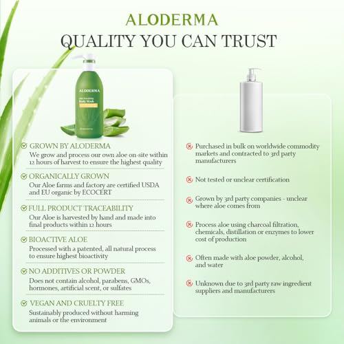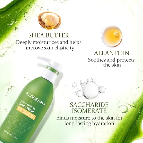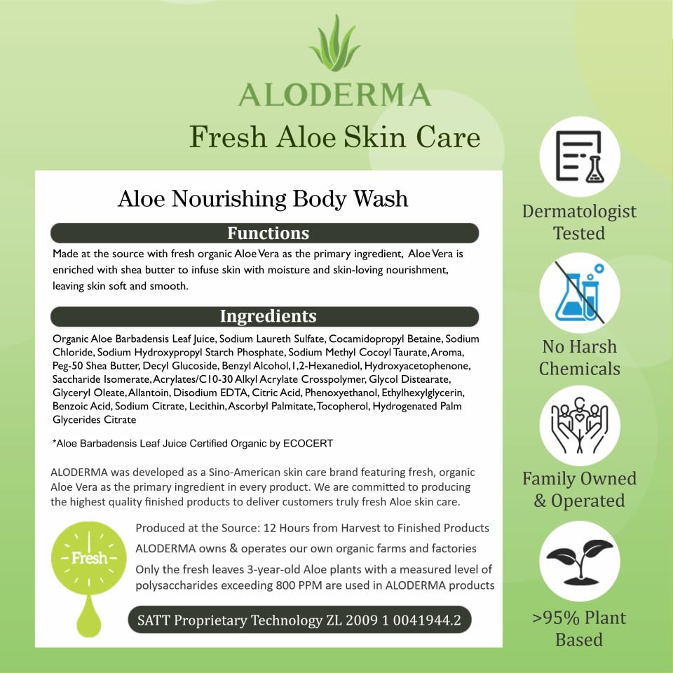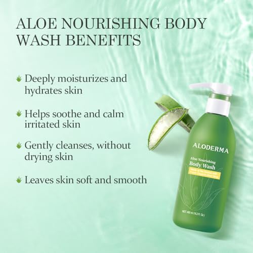 Deep Hydration & Gentle Cleansing: Aloderma Aloe Nourishing Body Wash is made with organic aloe vera as the primary ingredient, delivering intense hydration while gently cleansing the skin. Formulated for dry and sensitive skin, it helps soothes irritation and locks in moisture, leaving your skin feeling refreshed, silky-smooth, and nourished.