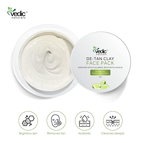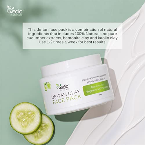 De Tan Face Pack-100g | Enriched With Cucumber Extract, Bentonite Clay & Kaolin Clay | Removes Tan, Skin Brightening & Hydrates | 100% Organic