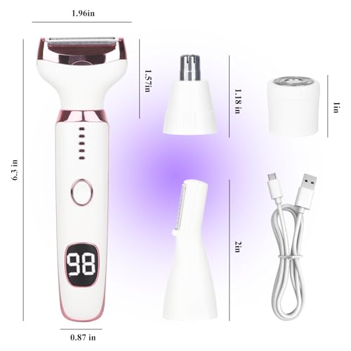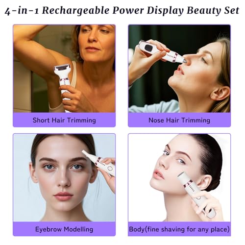 Electric Razor for Women Men,4 in 1 Painless Ladies Wet & Dry Body Razors and Facial Hair Remover,Rechargeable Led Display Hair Removal Kit for Nose Face Body Leg Bikini Arm Hair (White)