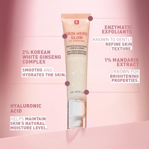 Erborian Skin Hero Glow, Non-Tinted Bare Perfector, Illuminates, Highlights, Hydrates, Smooths for Natural Radiant, Glass, Dewey Look, Korean Skincare