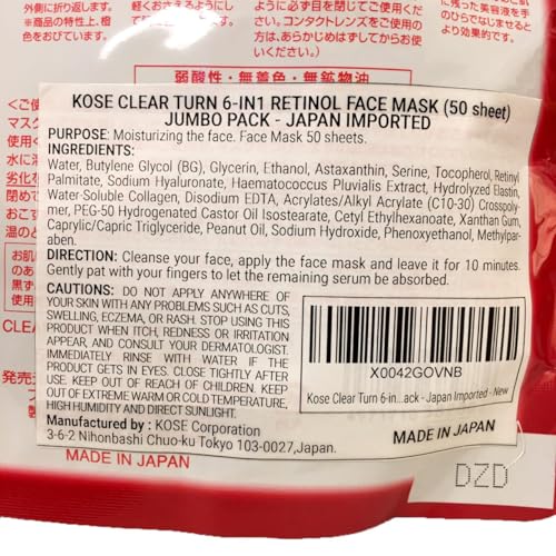 Kose Clear Turn 6-in1 Retinol Face Mask (50 sheet) Jumbo Pack – Japan Imported