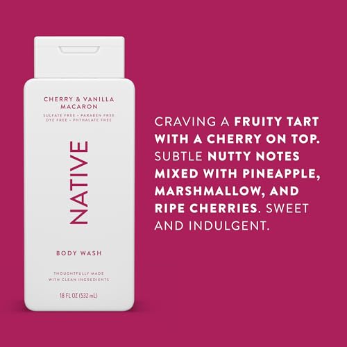 Native Body Wash Contains Naturally Derived Ingredients | For Women & Men, Sulfate, Paraben, & Dye Free Leaving Skin Soft and Hydrating | Cherry & Vanilla Macaron 18 oz – 2 Pk