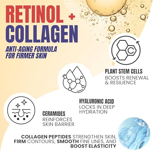 Skin Firming Retinol Collagen Body Lotion with Stem Cells for Aging Skin and Wrinkles, Non-Greasy, Lightweight Moisturizer, Fragrance-Free, 16.9 fl oz