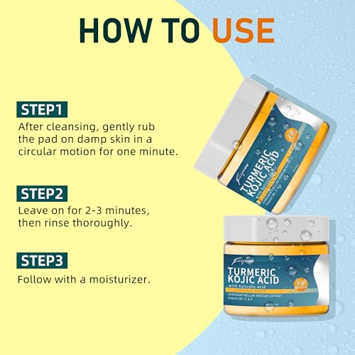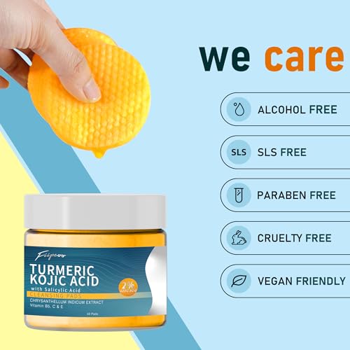 Turmeric Kojic Acid Cleansing Pads – 80 Pcs in 2 Jars – Exfoliating & Hydrating Turmeric Cleansing Pads for Face