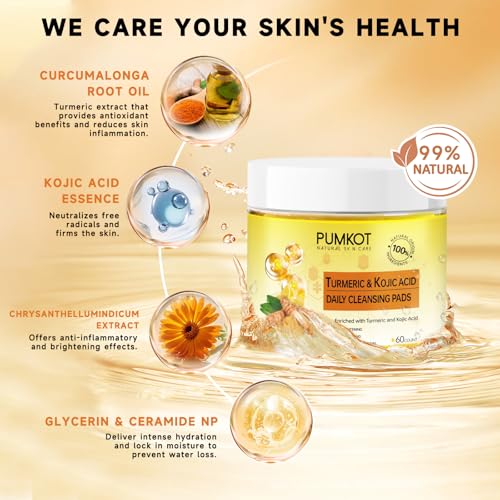 NATURAL INGREDIENTS – Take Care of Your Skin Health:Each of our turmeric cleansing pads is infused with kojic acid and turmeric essence, and added with lemon and olive ingredients. This turmeric kojic acid cleansing pads is scientifically formulated to address women’s facial roughness and enlarged pores.